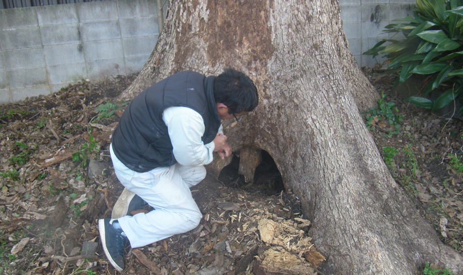 クビアカツヤカミキリの予防対策、被害木の治療をいたします。